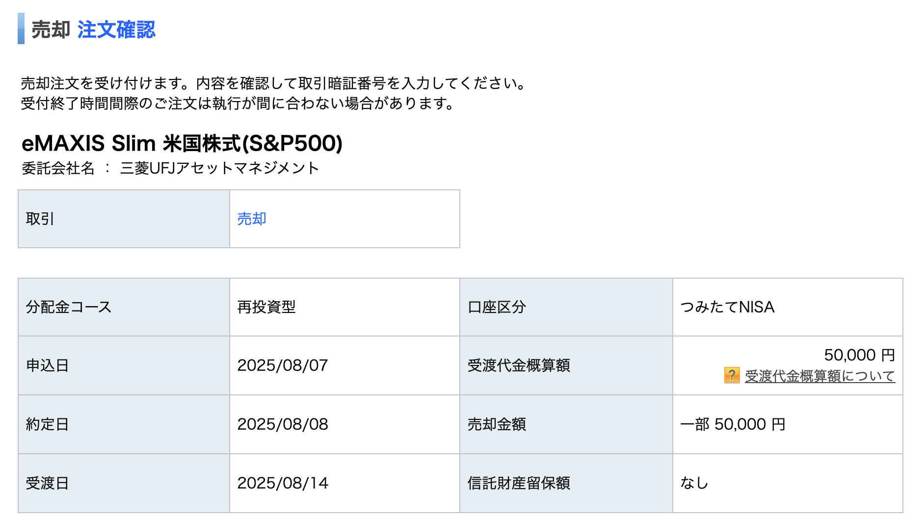 - 売却: 影響を受けそうな投資信託を売却する。